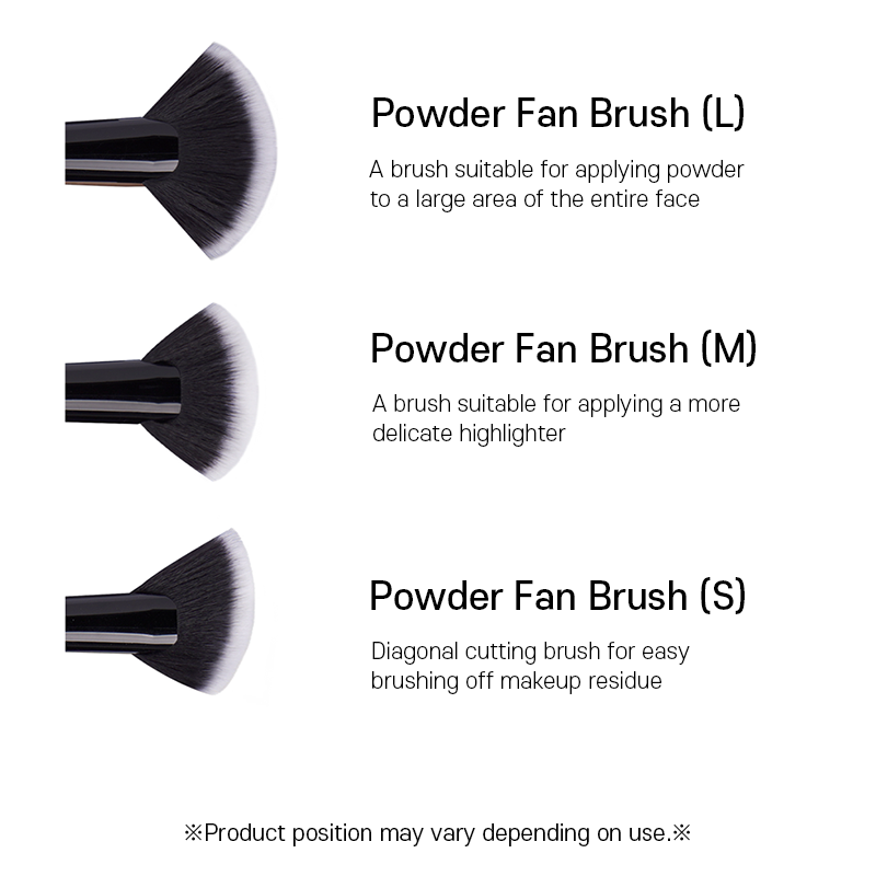 | Description | ▶ Product Features - Possible to change hair, ferrule, handle color and material - Possible to print own logo ▶ Lead time - It takes 6~70 days ▶ Product color - Hair: Black & White - Ferrule+Handle: Gray & Black ▶ Product size 1. Powder fan brush (L) : Hair 32mm / Ferrule+Handle 120mm 2. Powder fan brush(M) : Hair 25mm / Ferrule+Handle 120mm 3. Powder fan brush(S) : Hair 20mm / Ferrule+handle 110mm |