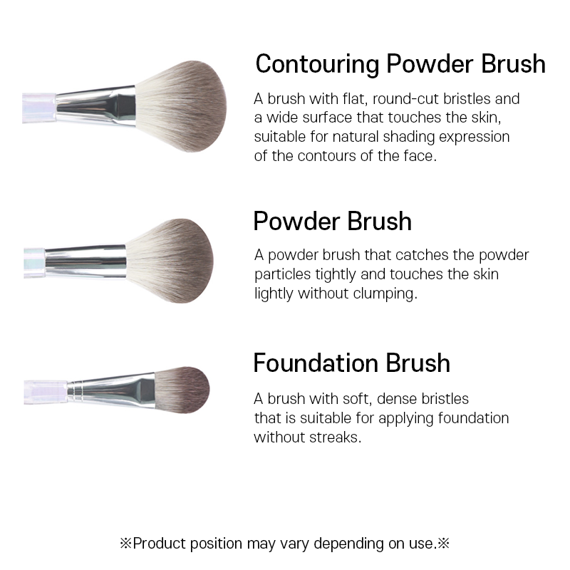 | Description | ▶ Product Features - Brilliant hologram multi brush collection - Possible to change hair, ferrule, handle color and material - Possible to print own logo ▶ Lead time - It takes 6~70 days ▶ Product color - Hair: White & Brown - Ferrule : Silver - Handle: Hologram ▶ Product size 1. Contouring powder brush : Hair 50mm / Ferrule 45mm / Handle 101mm 2. Powder brush : Hair 46mm / Ferrule 45mm / Handle 101mm 3. Foundation brush : Hair 30mm / Ferrule 48mm / Handle 100mm |