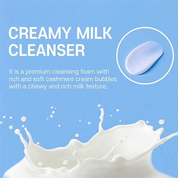 | Description | ▶ Information A premium cleansing foam with rich and soft cashmere cream bubbles with a chewy and rich concentrated milk texture. ▶ Benefits ✓ Soft melting with 10% high oil content ✓ 100% plant-derived 'Vegan White Milk' derived from rice, oats and soybeans ✓ Skin moisturizing, skin tone improvement, skin soothing, barrier strengthening effect ✓ Maintains dense and rich foam for a long time with 'Oil in Hybrid System' ▶ How to use 1. Take an appropriate amount and make a rich lather with water. 2. Place the foam on the skin with sunscreen or make-up and gently roll. 3. After rolling, rinse thoroughly with lukewarm water. 4. Experience moist skin that is refreshed and saturated with moisture! ▶ Package ✓ Blow/Pump |